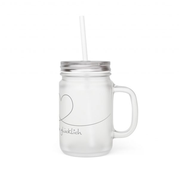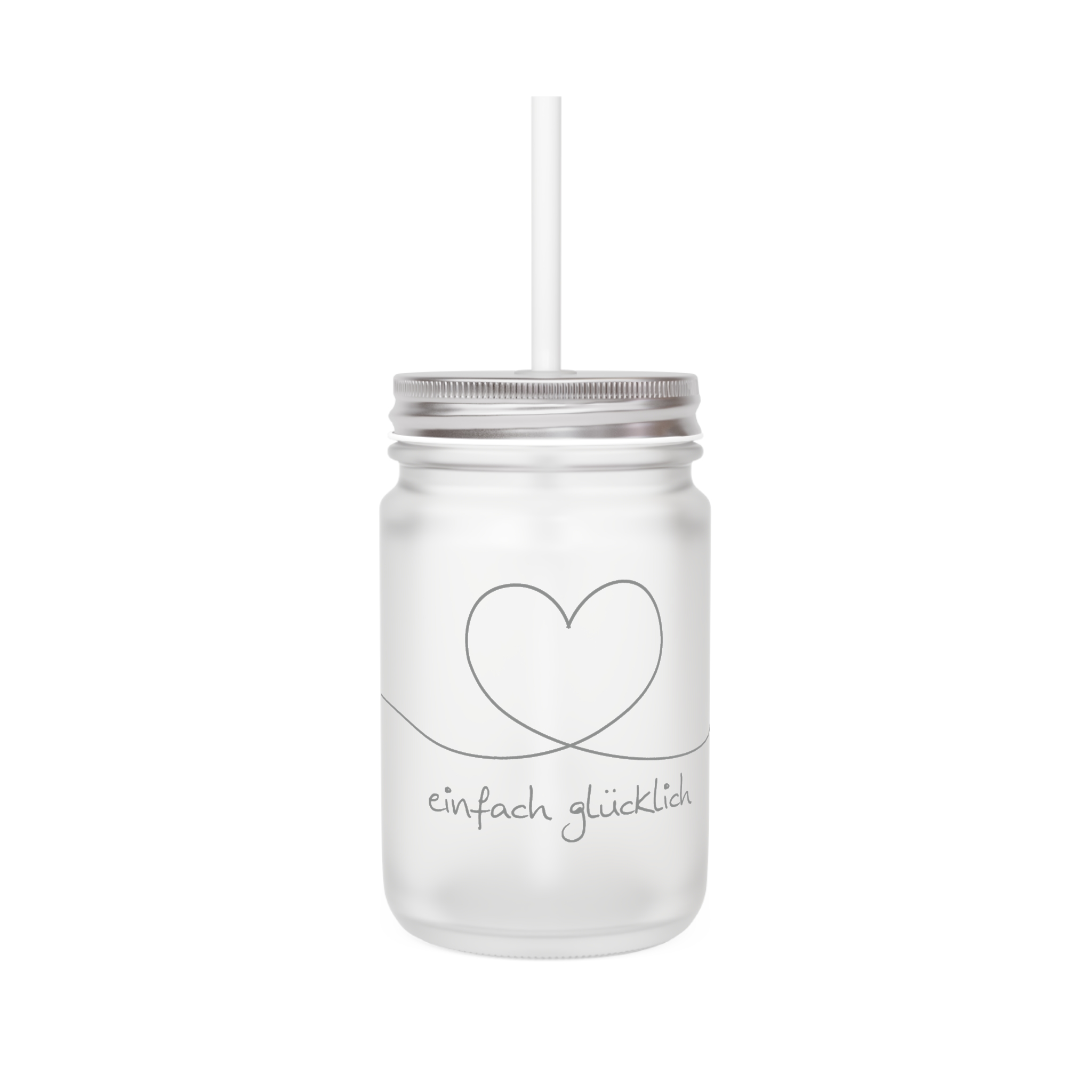 Trinkglas „einfach glücklich“ mit Deckel und Strohhalm